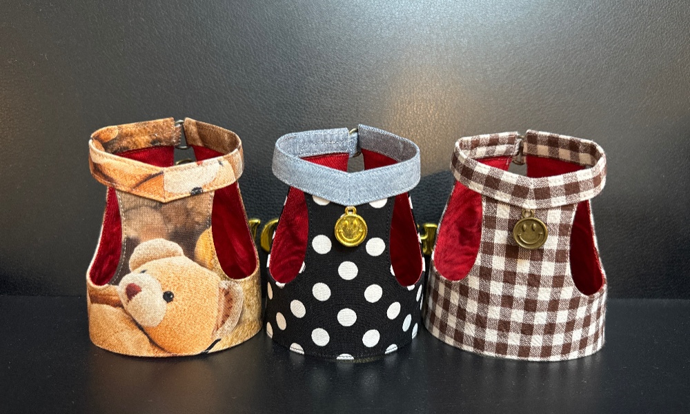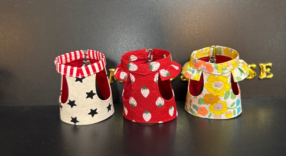 | 4番サイズ(¥5,800) 一般的な目安 →3~6ヵ月 (お散歩デビュー) | サイズUPのため、追加料金→800円 首まわり→13~15㎝ 胴まわり→18㎝位まで ⚫️低身長&ぽっちゃり体型で3~7ヵ月まで使用しました |