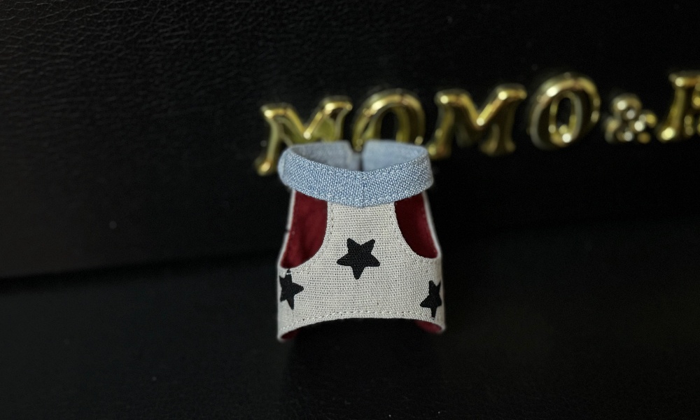 ハーネス練習用 (¥5,000) 一般的な目安→ 生後2~3ヶ月位 細身体型 | 首まわり→7.5~9㎝ 柔らかい生地で制作するため、生地が限られてしまいます。完成品のみの販売となります。 2番サイズが抜ける子、細身体型用 |
