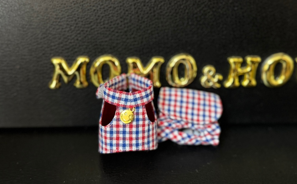 ショウガラゴ用セットアップ【3番サイズ】赤チェックキラキラリボン付き