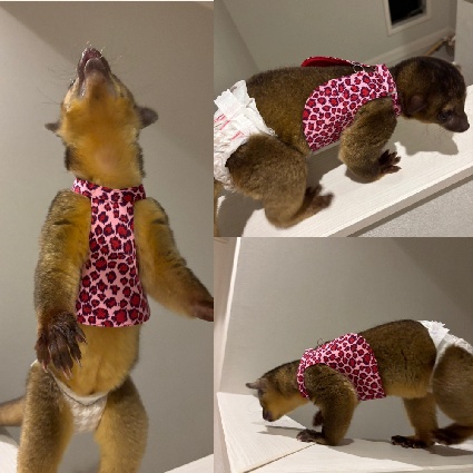 | 4.5番小さめsize | Babyサイズ(離乳後、お迎えすぐ) (ミーアキャット用4.5番(小)サイズです。) ※ミーアキャット用ハーネスのカテゴリーからお選び下さい ◉この時期からハーネス練習するのがオススメです。 ※ぴったりサイズをお選び下さい。 大きめを買うと脱げますのでハーネスは脱げるもの!と認識したらひたすら脱ごうとして練習失敗する原因に。 |