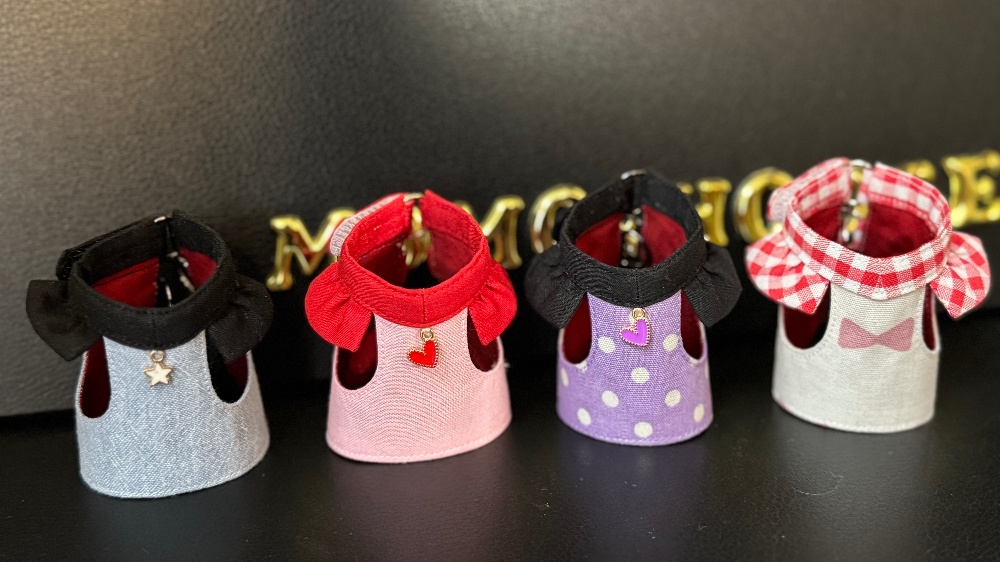 | 5番サイズ (¥6,000) 一般的な目安 →アダルト | サイズUPのため追加料金→1,000円 首まわり→17~20㎝ 胴まわり→24~26㎝位まで ※首回り19.5㎝以上の子は3sというサイズをオススメします ◉ミーアのアダルト最大サイズです。 これ以上のサイズは要相談。 |