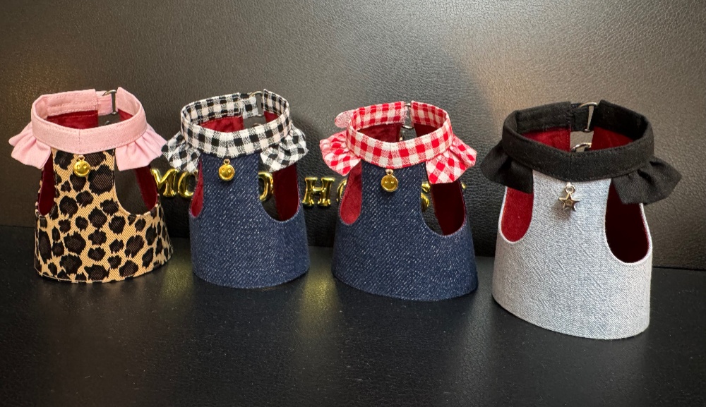 | 4番サイズ(¥5,800) 一般的な目安 →3~6ヵ月 (お散歩デビュー) | サイズUPのため、追加料金→800円 首まわり→13~15㎝ 胴まわり→18㎝位まで ⚫️低身長&ぽっちゃり体型で3~7ヵ月まで使用しました |
